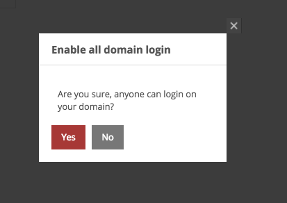 2. When you will click on both the above options user can login into any domain and allow your users to login to your white labelled website, this pop-up will appear for the confirmation of changes done.